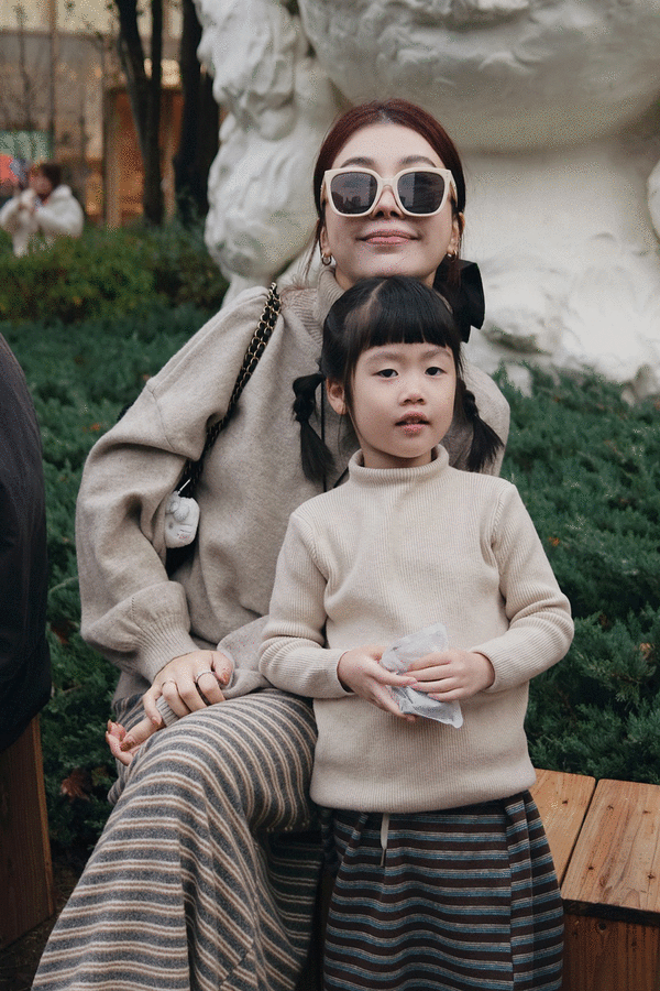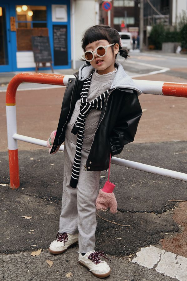 【東京旅拍】捲邊微高領坑條小童針織上衣*3色