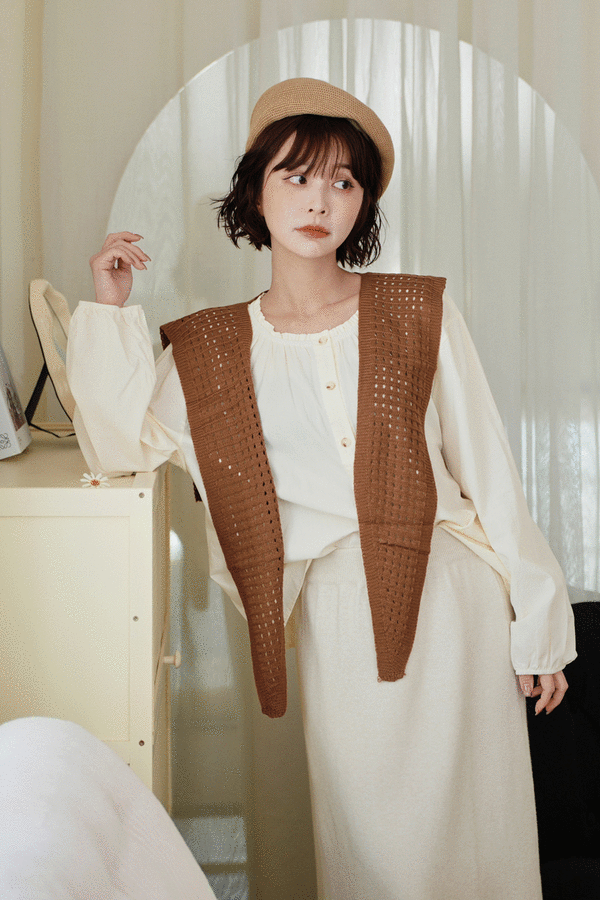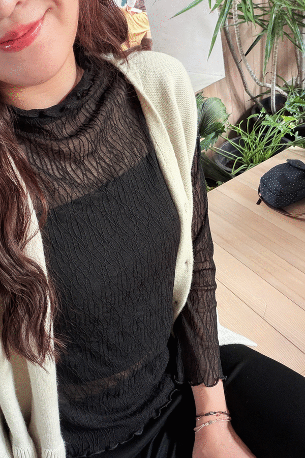 半高領澎袖坑紋包芯紗上衣(XL可穿/不勒脖)
