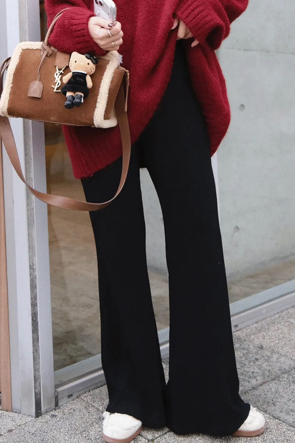 超彈~雙釦加絨直筒黑褲*1色