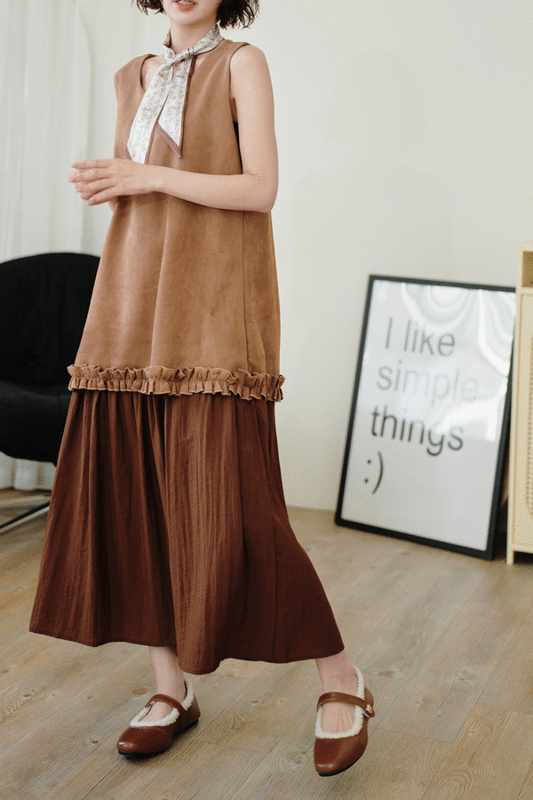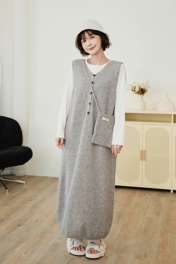 小V領柔軟安迪絨連身洋(側開岔/XL可穿)