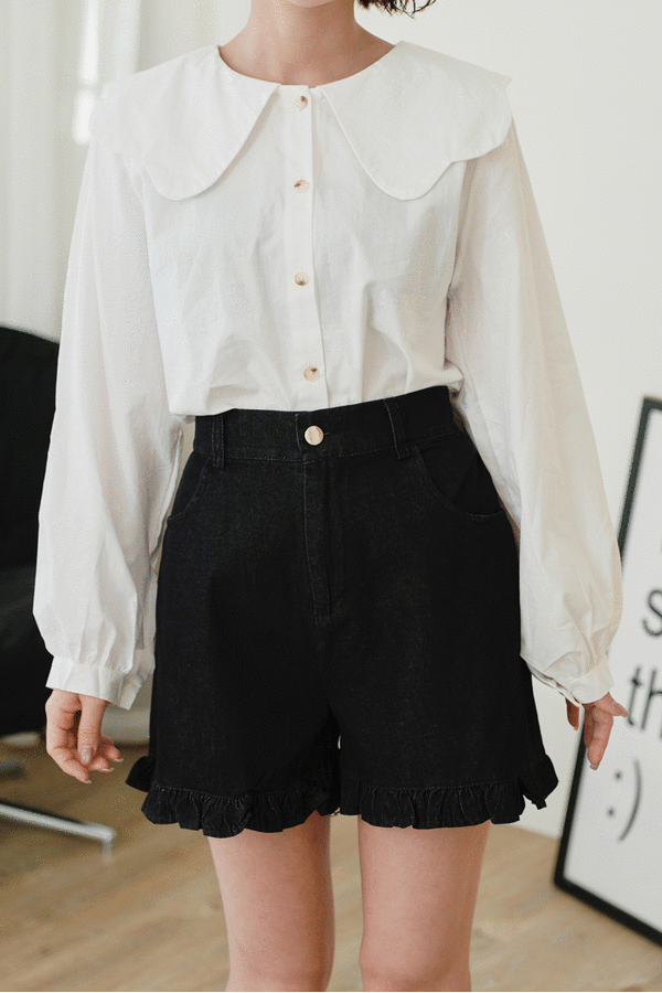 可愛小花邊牛仔短褲(後鬆緊/兩個尺碼)