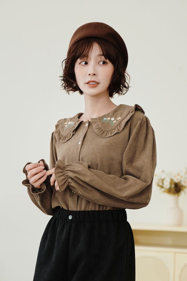 【H自訂-小孩】MIT★刺繡立領凹袖上衣