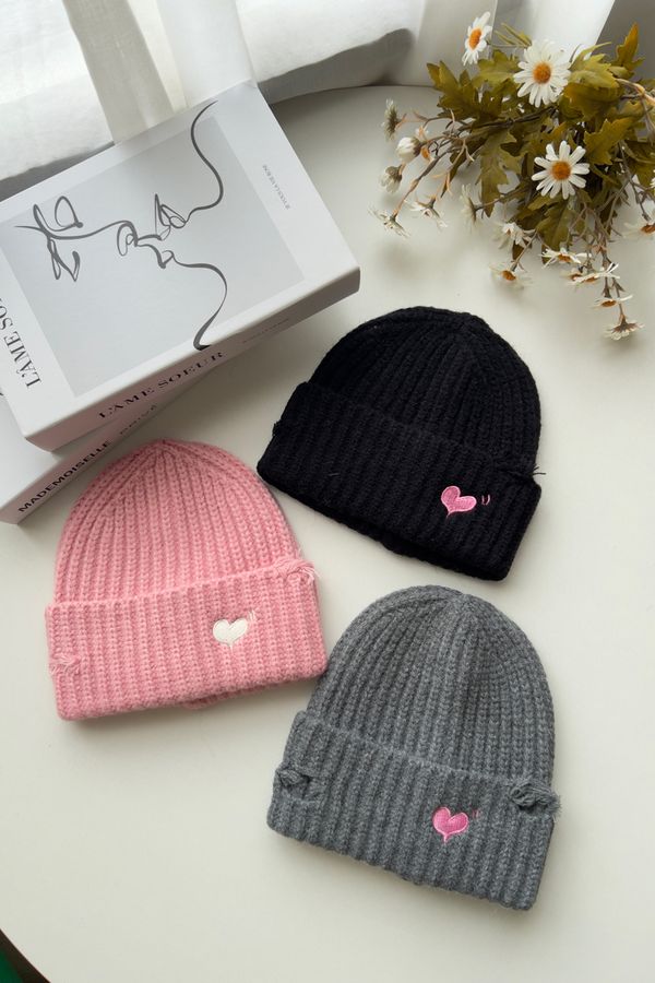 【東京旅拍】愛心刺繡刷破毛帽*4色