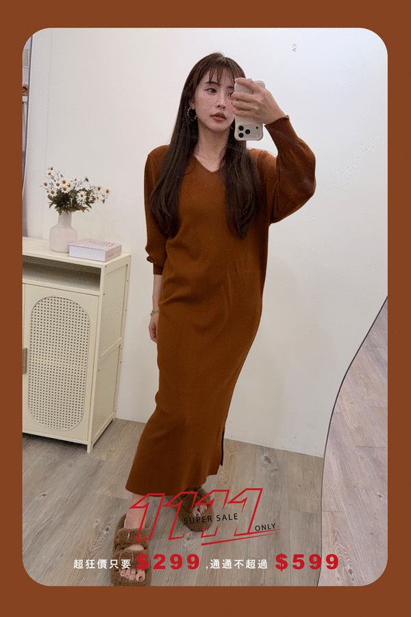 雙11ო小V領柔軟安迪絨連身洋(側開岔/XL可穿)