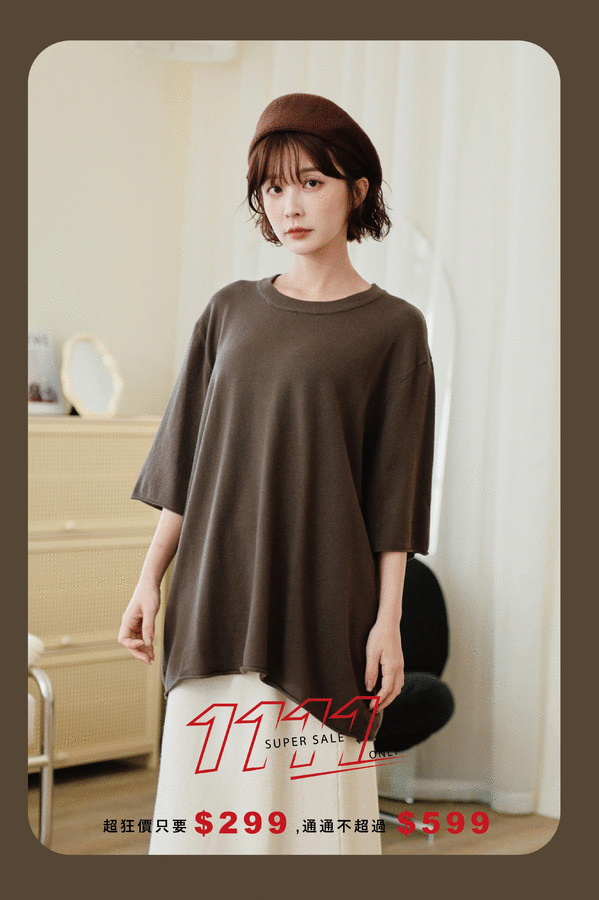 雙11ო純色捲邊包芯紗長版上衣/短洋(XL可穿)