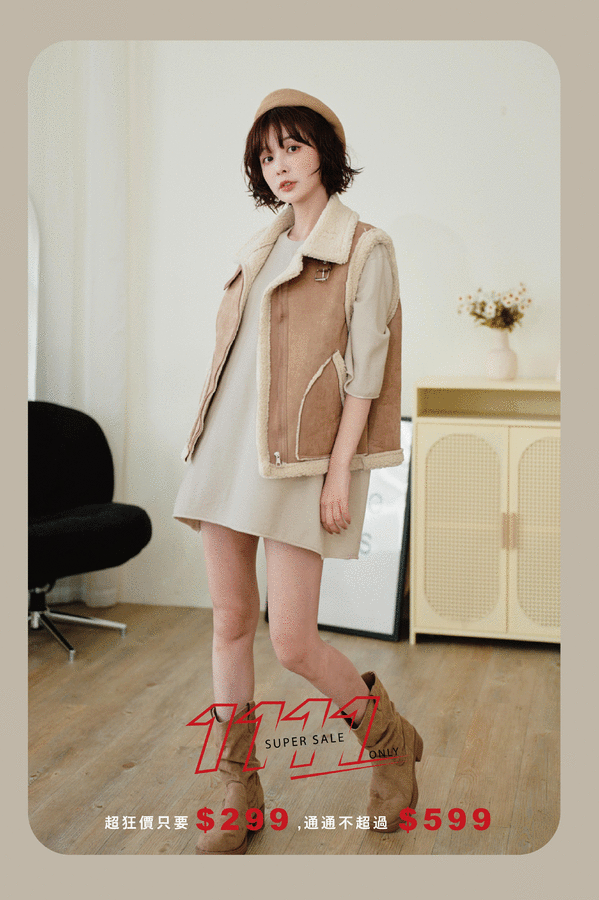 【限量現貨】大V領麂皮流蘇背心長洋(有口袋/附綁帶)