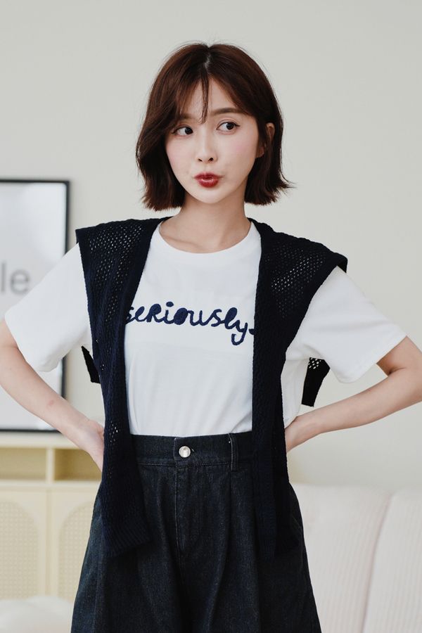 超顯瘦刺繡Tee(附洞洞披肩)
