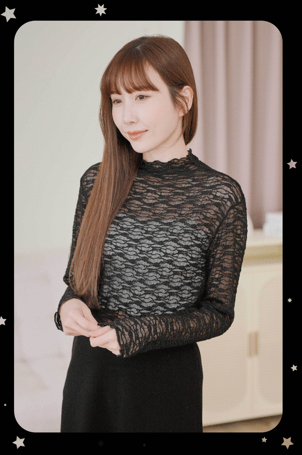 水波紋木耳透膚上衣