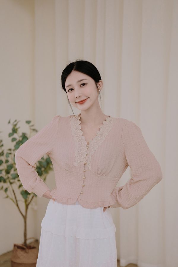 蕾絲荷葉袖透膚上衣(可內搭/外穿)