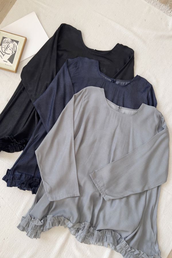 【限量現貨】初春圓領長袖荷葉下擺上衣/短洋*3色