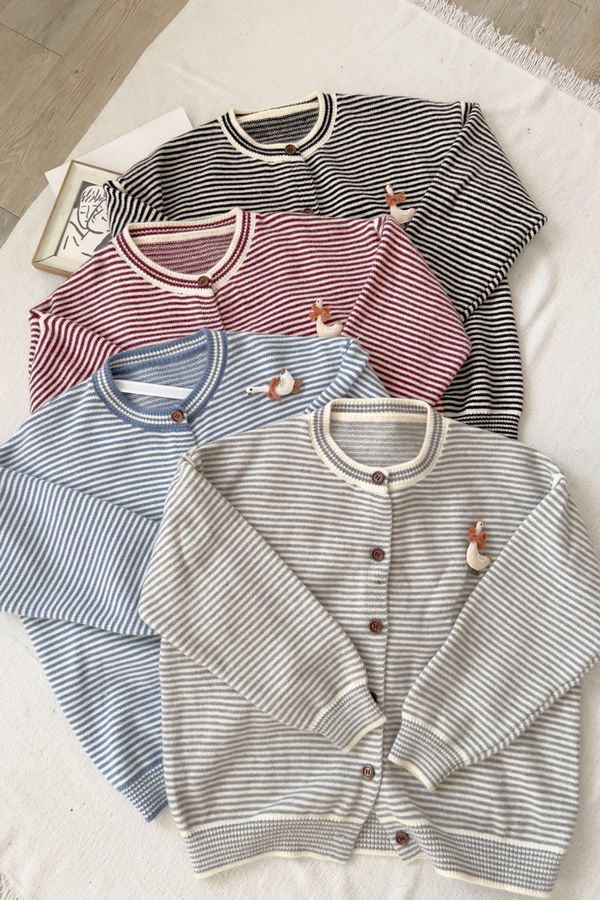 【限量現貨】可愛小鴨條紋針織上衣/外套*4色(小鴨可拆)