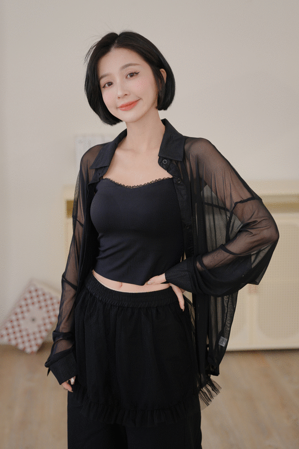 閃亮亮超親膚(不會刺)木耳捲邊透膚內搭上衣*5色