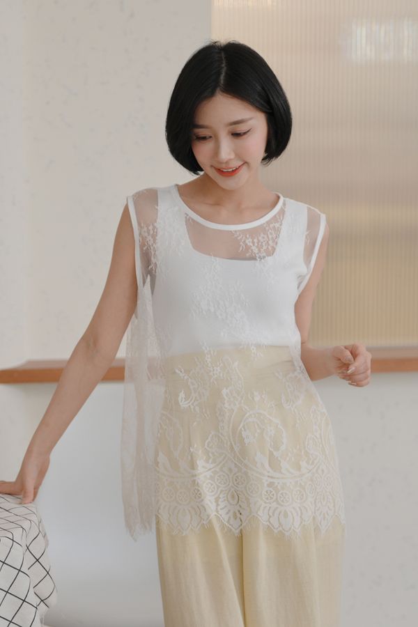 【限量現貨】小法式蕾絲花拼接無袖上衣