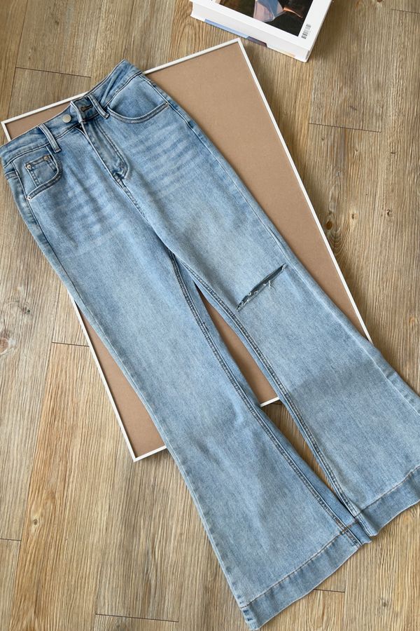 【限量現貨】長腿割破喇叭牛仔褲