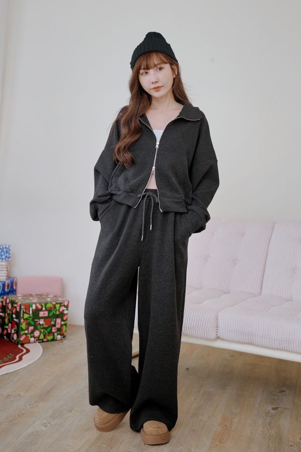 【東京旅拍】運動風羊絨拉鍊套裝(上身+長褲)*2色