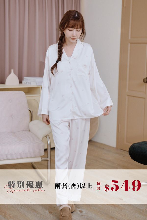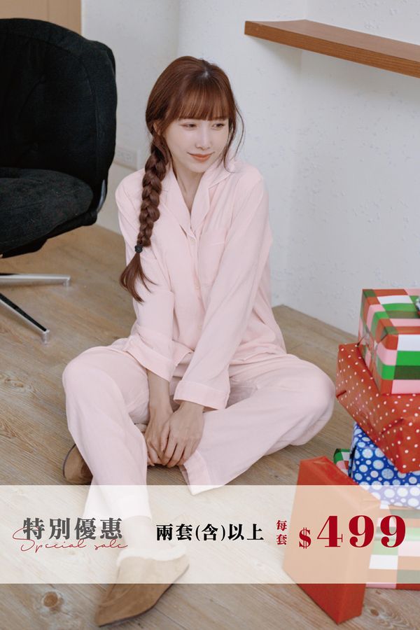 微甜雲朵棉睡衣套裝*3色(上衣+長褲/有bra/固定)