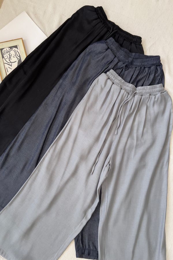 【限量現貨】微光澤抽繩鬆緊寬褲*3色