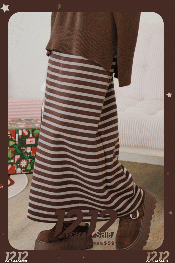 【雙12】條紋安迪絨中長裙(刷毛/全鬆緊/XL可穿)*3色