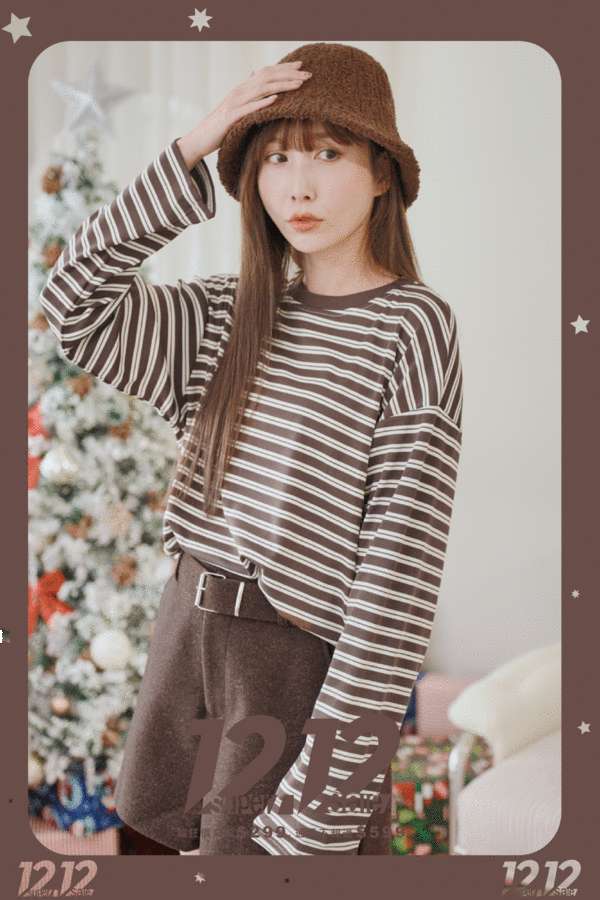 【雙12】條紋翻領拉鍊長袖針織上衣*4色