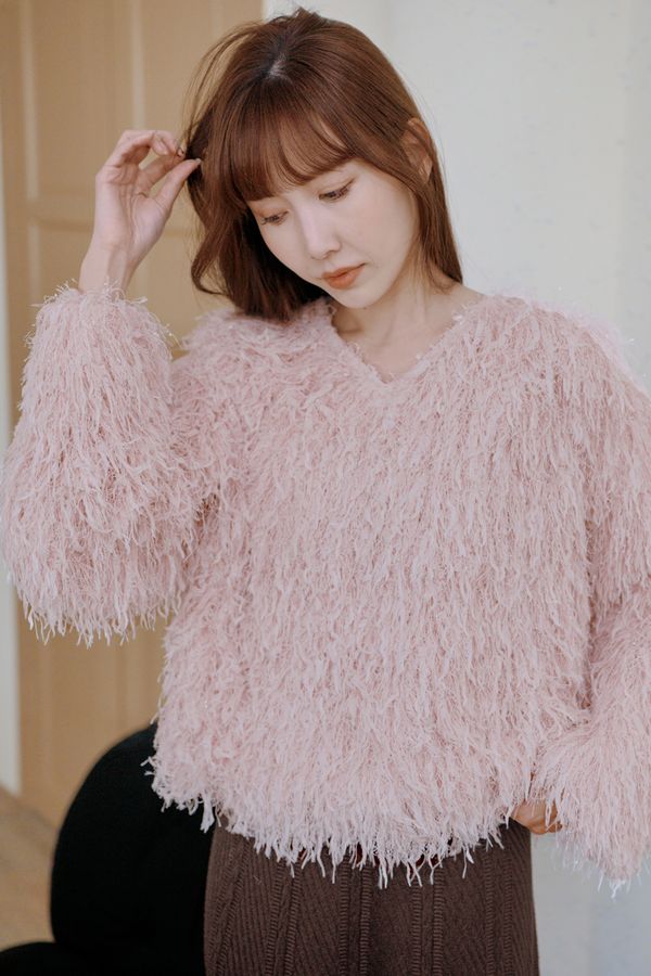 【限量現貨】大V領毛絨針織上衣(XL可穿)