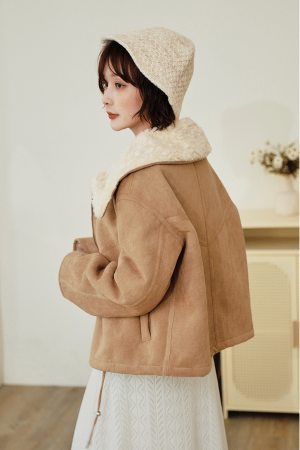 【東京旅拍】H自訂-質感愛心釦翻領皮外套(女版/帽子可拆)