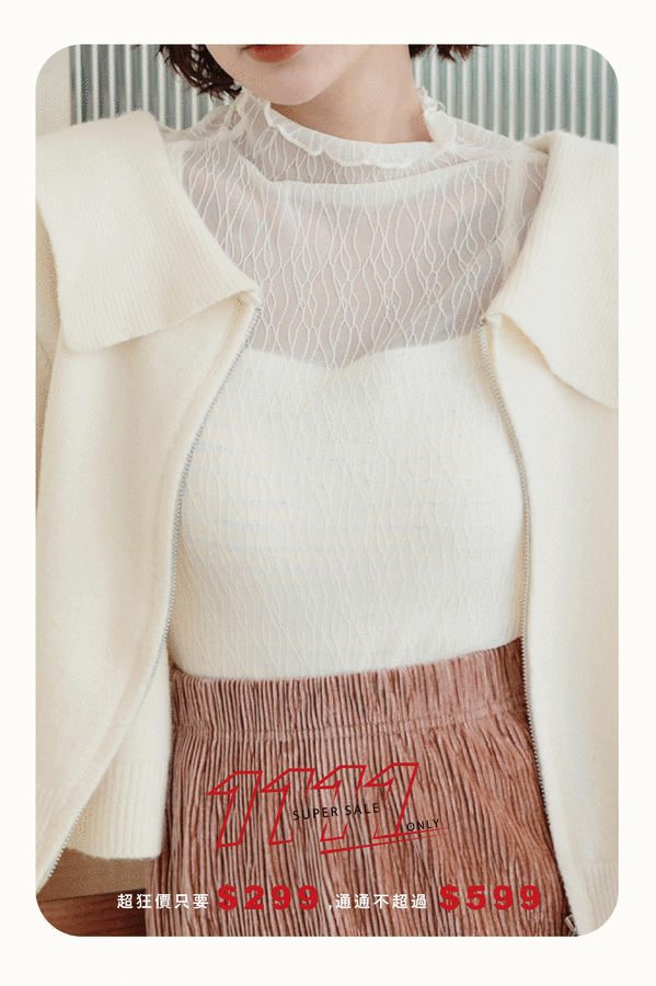 雙11ო水波紋木耳透膚上衣