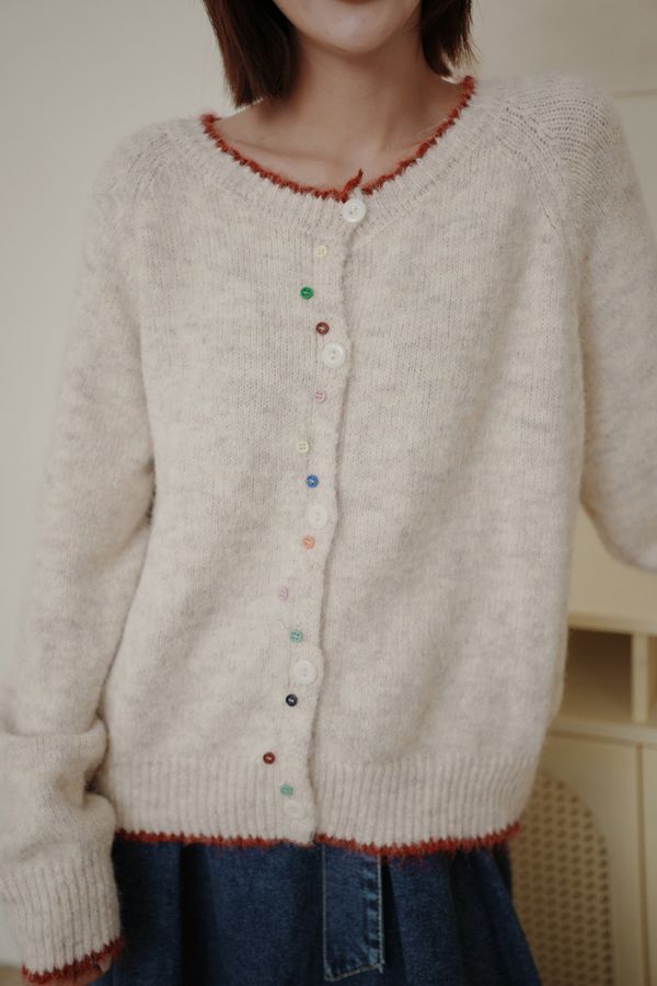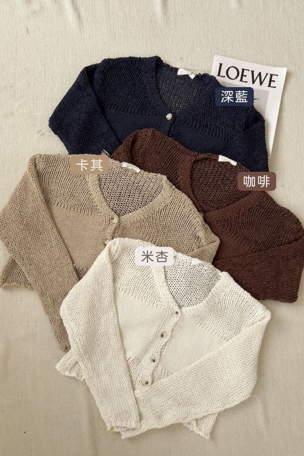 粗鉤針織琥珀釦上衣/外套(可拉平肩)